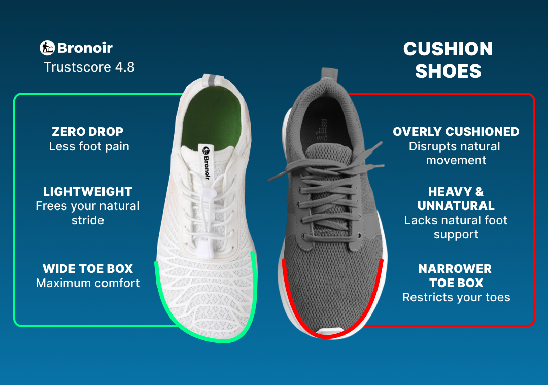 Bronoir Grounding Shoes are designed to restore what modern footwear takes away: real movement, real connection, and real relief. Featuring a zero-drop sole, wide toe box, and copper grounding plug, our barefoot shoes reduce inflammation, improve circulation, and support full-body alignment. Ideal for swollen feet, diabetic foot care, and anyone seeking pain-free living. Comfort that heals. Technology that grounds. Movement that matters.