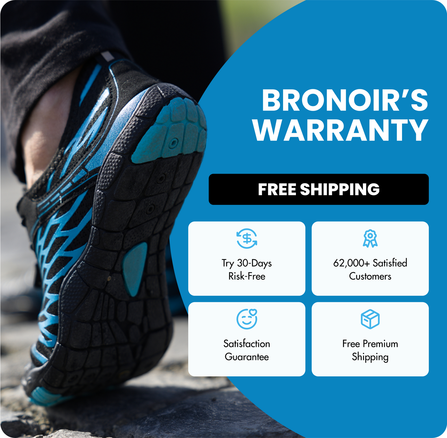 With Bronoir's ultra-thin 4mm soles, every step you take feels like you're walking barefoot. Reignite the joy of being active thanks to the innovative zero-heel technology that strengthens your muscles, prevents your feet from getting sore and effectively reduces pain in the back, knees and feet.